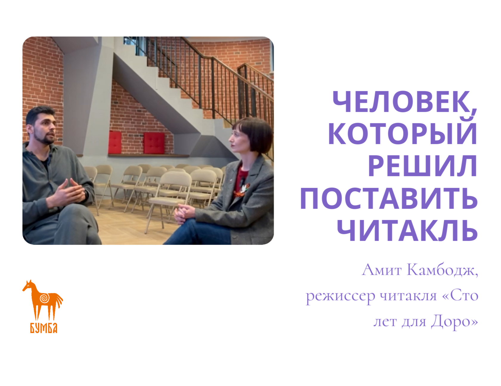 Издательство «Бумба» представляет вашему вниманию уникальную возможность прикоснуться к миру театрального искусства и узнать больше о постановке читакля «Сто лет для Доро», триумфально шествующего по сцене Тюмени. Мы рады поделиться эксклюзивным видеоинтервью с режиссёром-постановщиком, талантливым Амитом Камбоджем.
